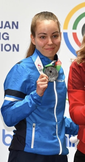 Ella Hakala saavutti hopeamitalin tiukan finaalitaiston jälkeen tyttöjen ilmapistoolissa. Hänen peruskisan tuloksensa oli 553.