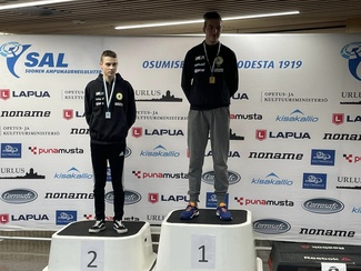 Poikien M18-sarjan ilmakiväärissä hopealle ampui Aapeli Rinta-Koski pistein 568,7.