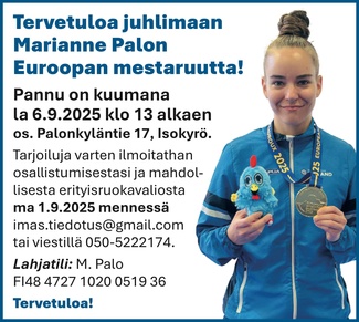 Marianne Palon EM-kultaa juhlittiin 6.9.2025