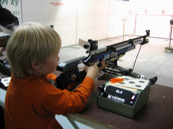 Suosio ylitti odotuksemme. Virastotalon kellarissa ampumaradalla kävi kuhina lasten ja nuorten kulttuuriviikolla järjestetyssä ammunnan esittelytilaisuudessa lauantaina 11.11.2006. Lajista kiinnostuneita vieraili paikalla arviolta noin 50. Tarkkoja lukuja ei pystytty laskemaan -vaikka tarkkoja olemmekin-, sillä seuran edustajilla oli kädet täynnä työtä innokkaiden lasten opastamisessa. Halukkaat saivat kokeilla myös yhtä erityistä harjoittelumuotoamme, Noptel-ammuntaa (tuttavallisemmin laser). Aseeksi tähän tarkoitukseen oli valjastettu Marjo Yli-Kiikan Ateenan olympialaisissa käyttämä ilmakivääri. Seuran ampujista Mikko Välimaa näytti mallia kuinka ammutaan pystyasennosta. Tyytyväisinä panimme merkille, että Kyrönmaalta löytyy paljon uusia tarkkasilmäisiä ampujalupauksia. Kiitoksia kaikille tutustumispäivään osallistuneille. Tuloskuntoa voi tulla edelleen hiomaan ja harjoittamaan tiistaisin ja torstaisin klo 18 alkaen. Tervetuloa! |